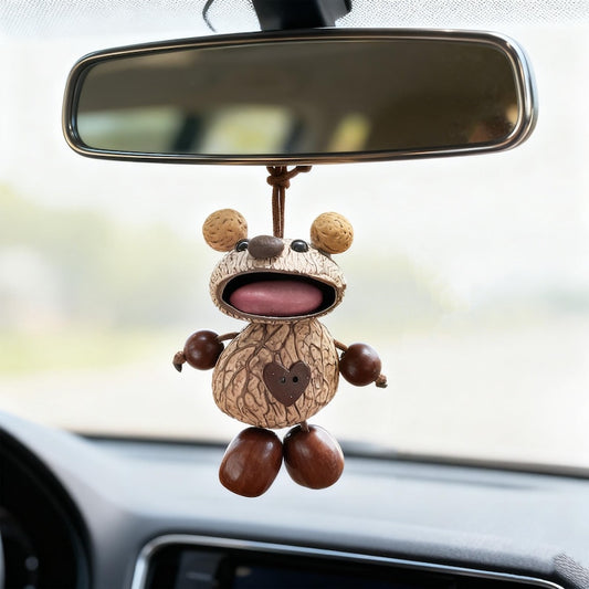 Mouse Car Charm, Nut Shell Brown Bear Ornament, Cute Animal Car Decor for Rearview Mirror, Unique Dashboard Accessory Gift for Drivers